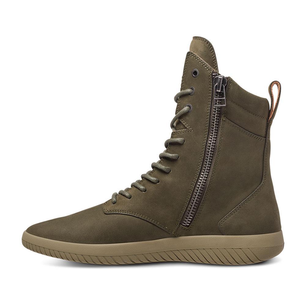 Functional and modern, the men's Tread Boot is built for the intrepid explorer on urban adventures. Crafted from premium leather, this sneakerboot features leather lining, a lightly padded collar and metal side zipper. MOBS’s signature tire inspired rubber outsole with internal EVA midsole offers flexibility, cushioning, and traction for this practical yet stylish sneaker boot.