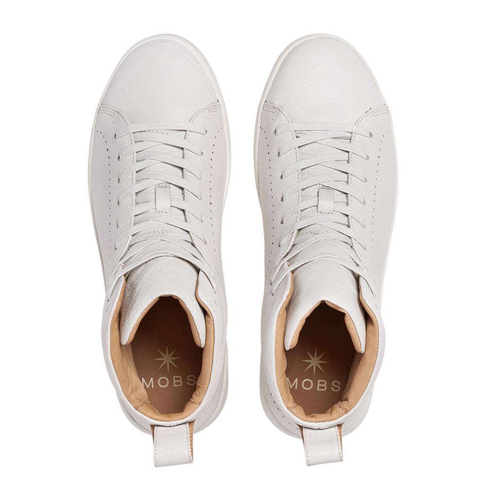 Essential high top sneakers for women. Crafted from premium leather, leather lining and removable antimicrobial foam sock liner. MOBS’s signature tire inspired molded rubber outsole with internal EVA midsole, providing flexibility, cushioning and traction.